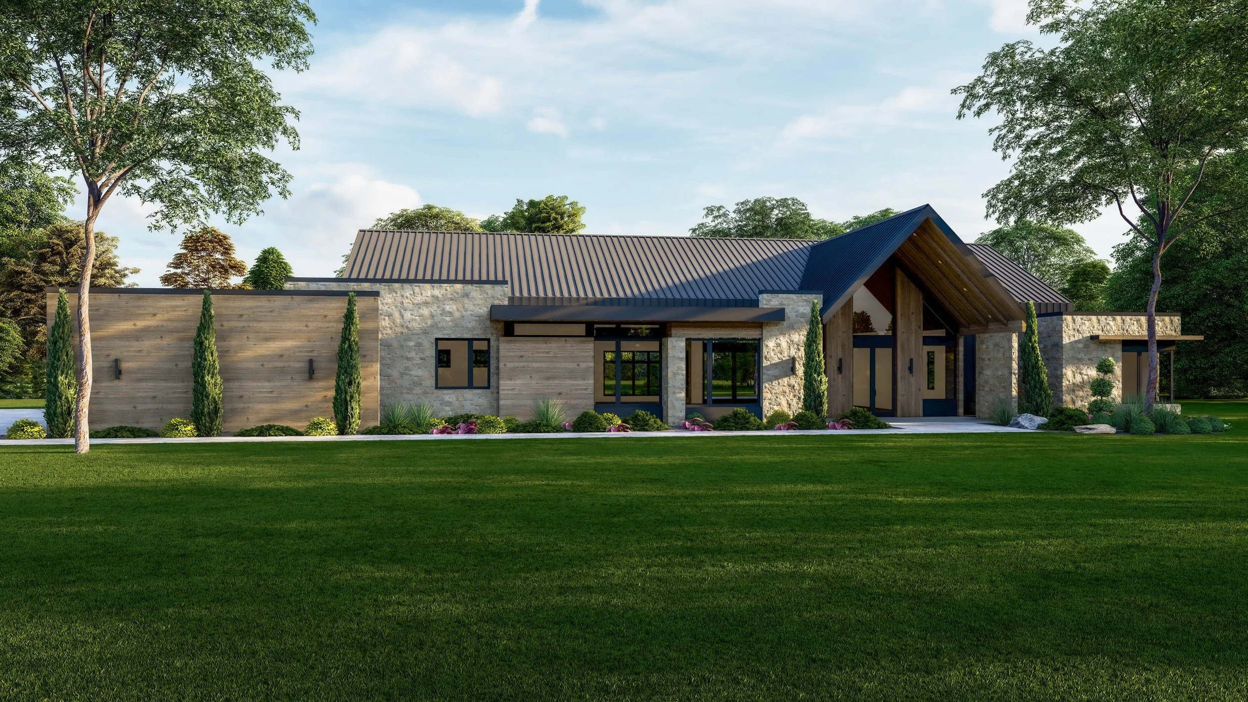 Low, horizontal rooflines and sculpted massing ground the residence, while expansive glazing invites light, movement, and connection. The interplay of materials is central to the experience: warm wood, textured stone, and sleek paneling intersect with intention, creating moments of depth and shadow without overpowering the overall composition. Each element is carefully calibrated to enhance the next, revealing a layered architectural language that is both expressive and composed.