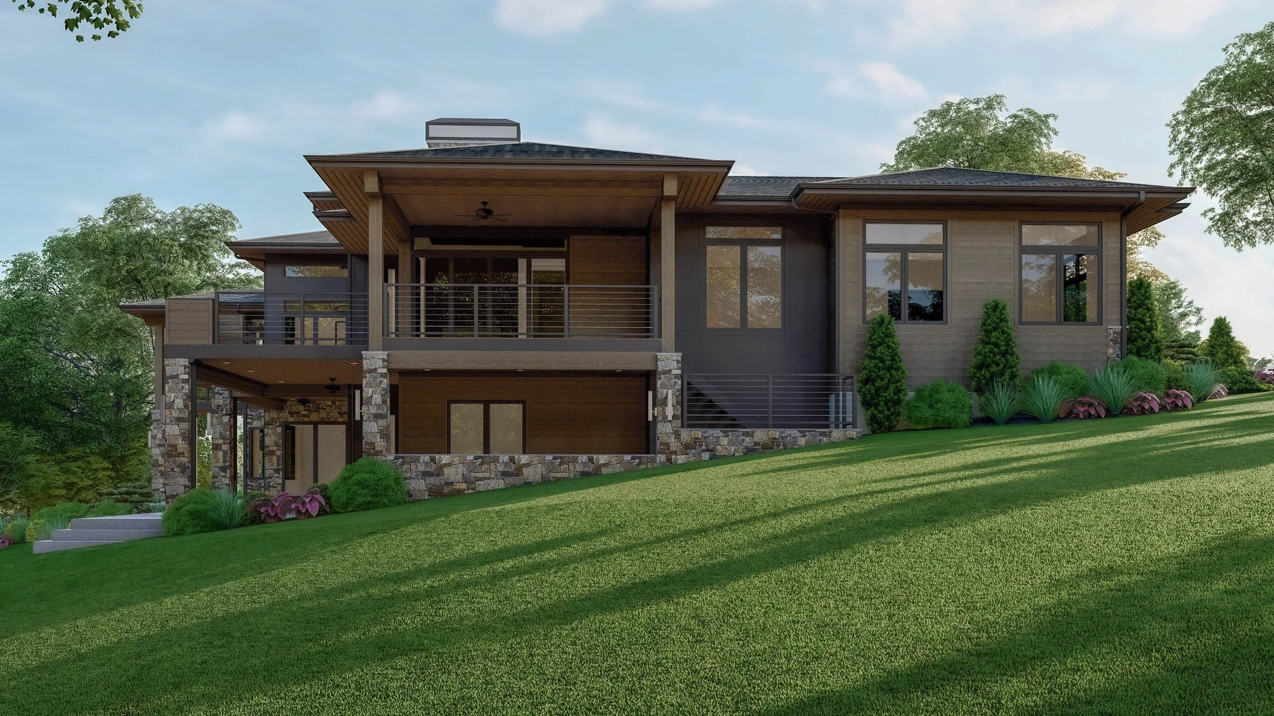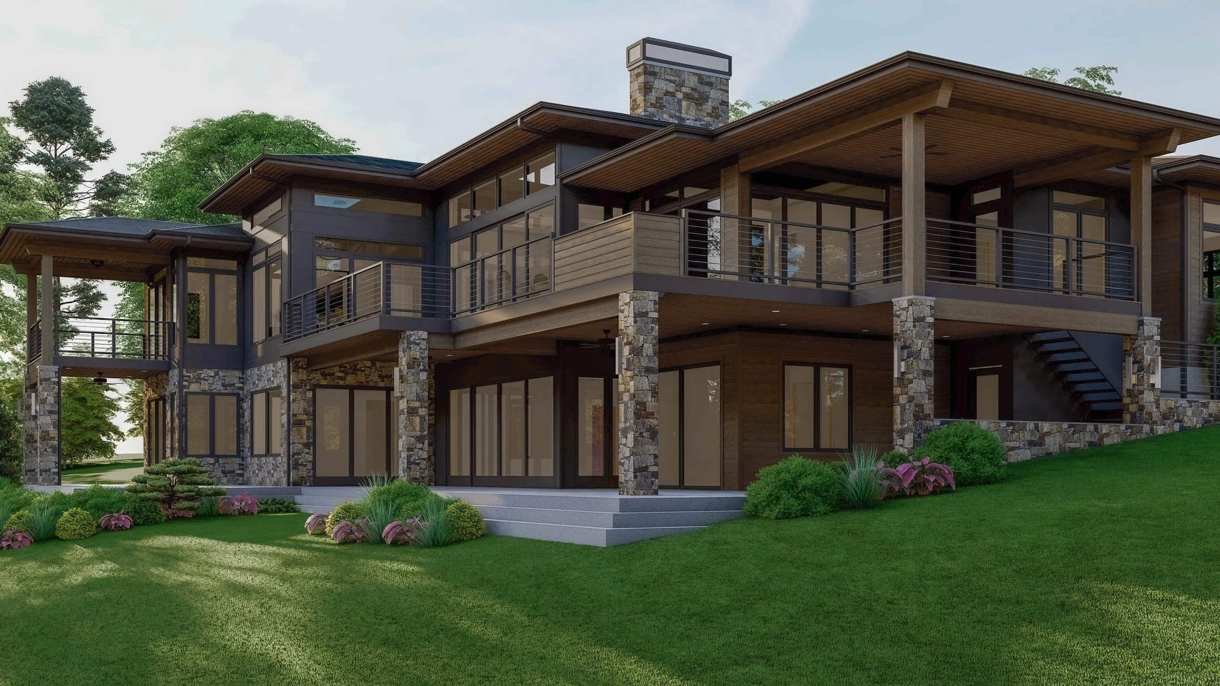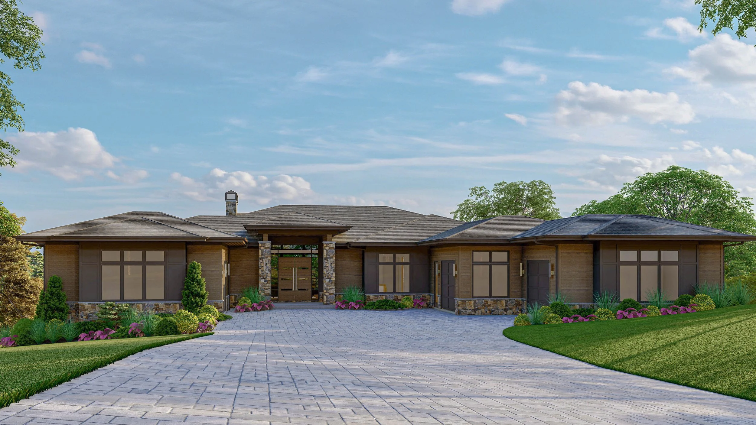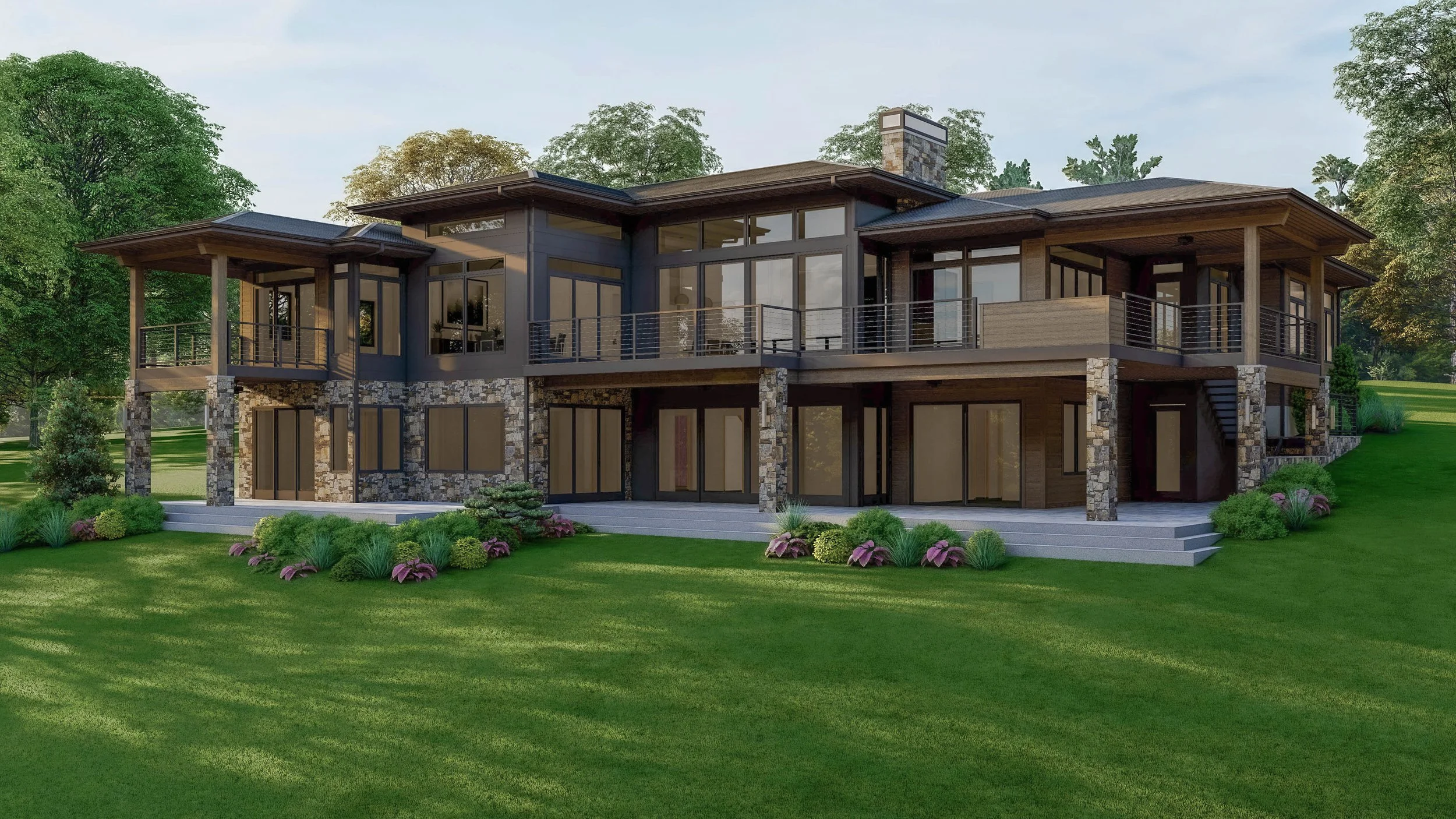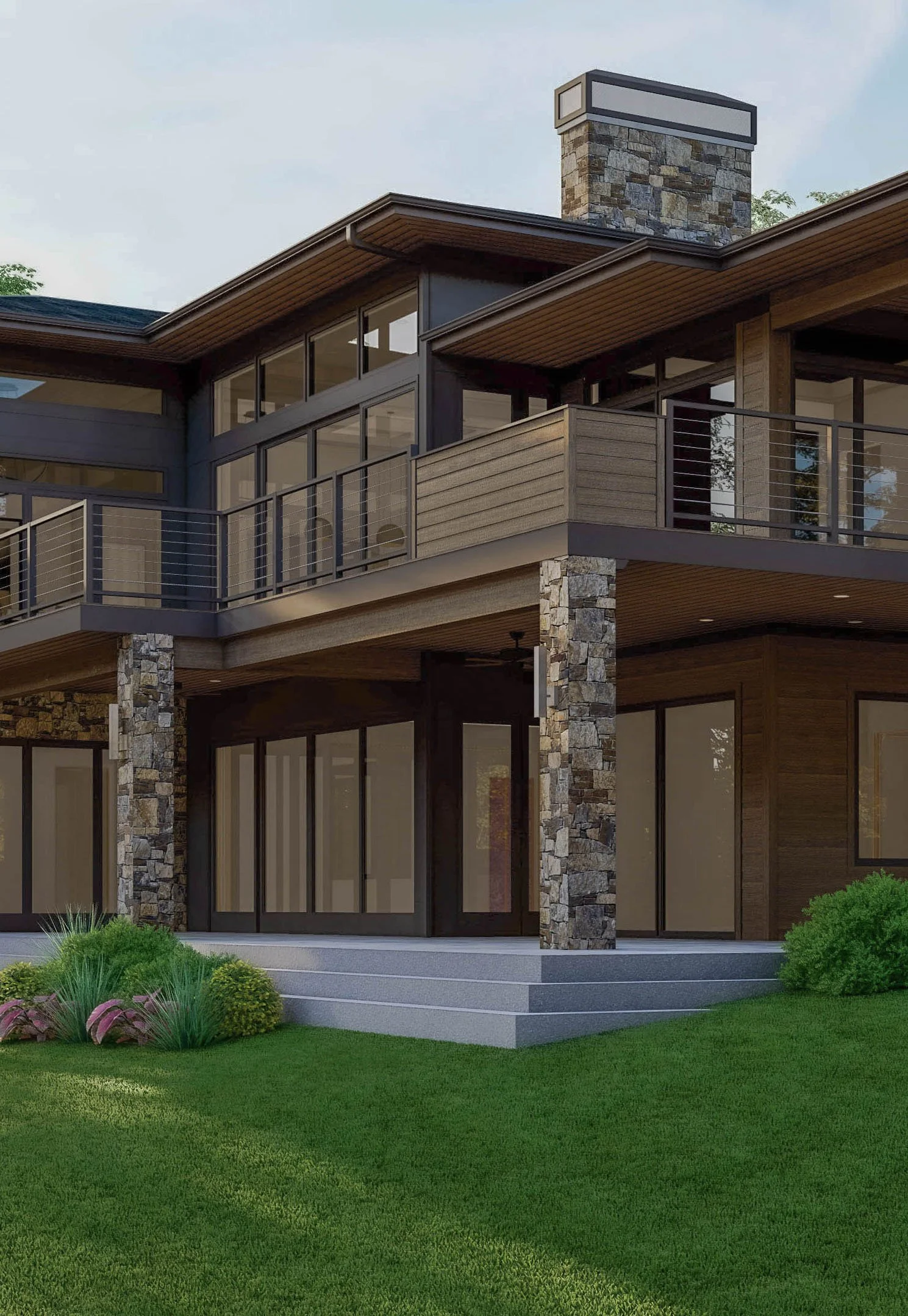 The Black Mountain Residence is among our most recent designs, gracefully situated in the rolling hills of Virginia. Inspired by the enduring legacy of Frank Lloyd Wright, this modern prairie–style home rises confidently from its sloped site, overlooking a tranquil lake and its surrounding landscape. The residence pays homage to the fundamental principles that defined Wright’s work—strong horizontality, a deep connection to nature, and a quiet sense of permanence.