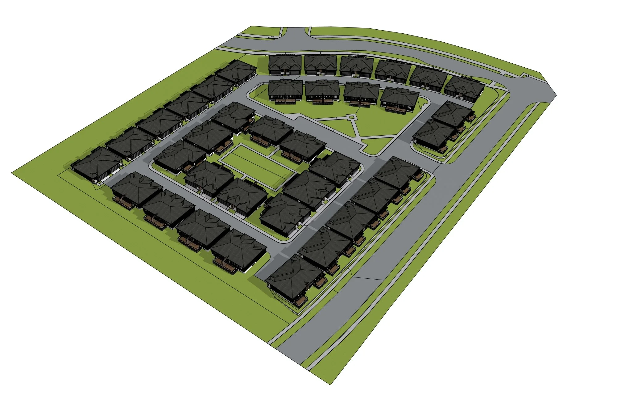 This 74 Unit Semi-Detatched Homes development is currently in the permit process. Developed on 6.5 Acres the architecture consists of modern prairie features blending contemporary materials, landscaped park areas, and walkable streets into a cohesive, refined residential enclave.