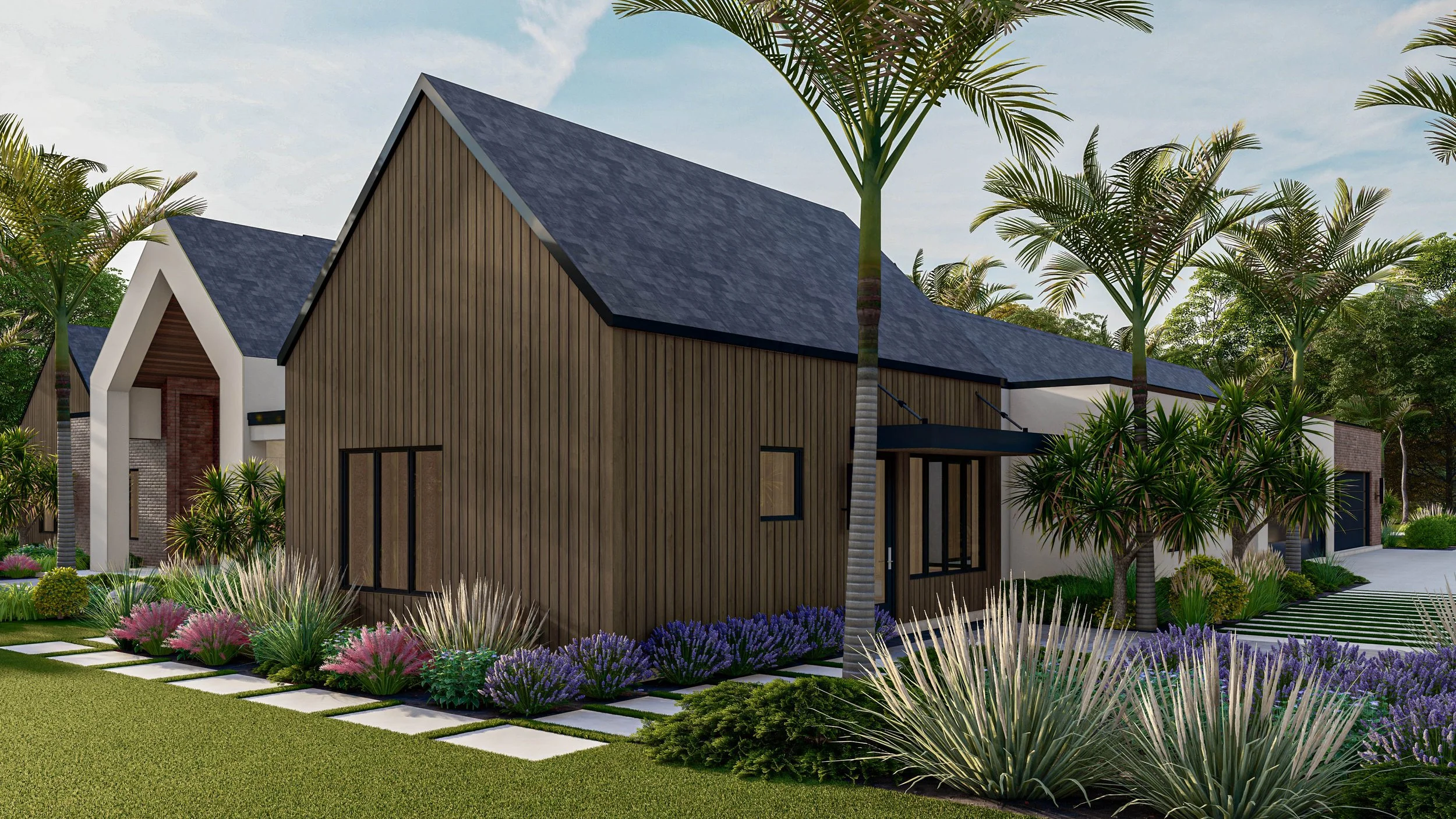 The Mesa II offers a modern interpretation of a timeless compound, composed as a collection of refined forms arranged with clarity and intention. A series of gabled volumes are thoughtfully connected to create a home that feels expansive yet intimate, balancing architectural presence with a strong sense of domestic comfort.